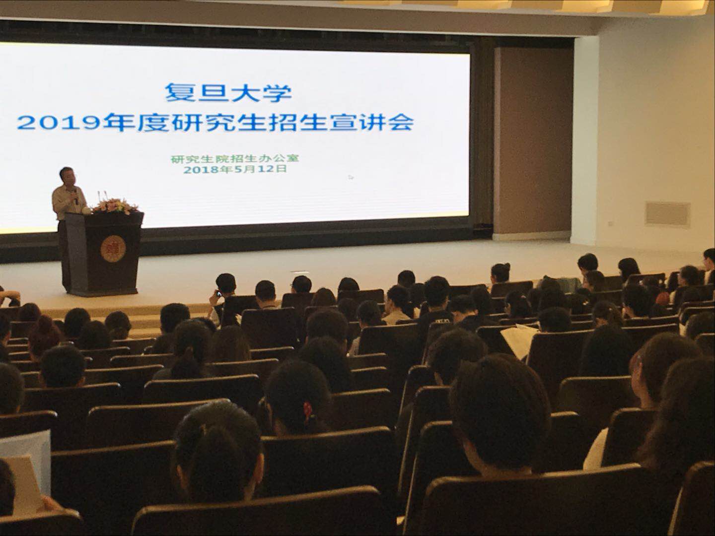 5月12日下午,复旦大学2019年度研究生招生宣讲会(上海地区)在我校光华楼东辅楼202报告厅举行,400余名上海及周边地区的意向考生报名参加。宣讲会分三个部分进行,嘉宾演讲、招生政策解读和互动交流。本次宣讲会作为2019年度研究生招生宣传启动会成功举办,我校2019年度研究生招生宣传活动也就此拉开帷幕。